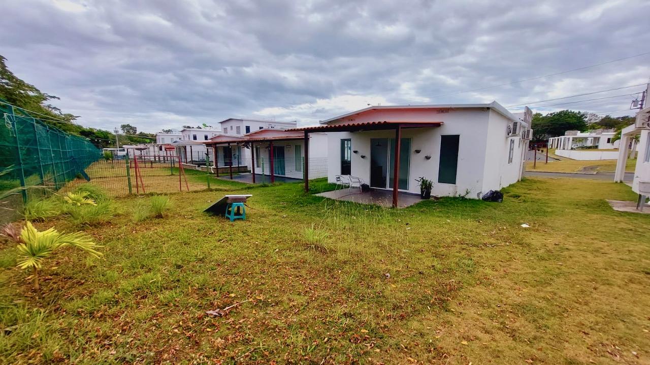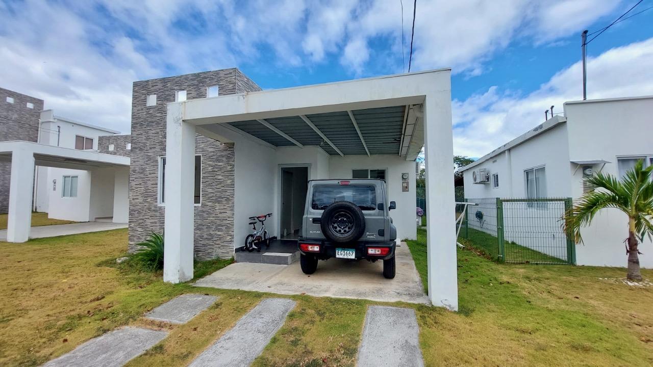 Casa en PH The Village, casa de 3 recámaras y 2 baños, sin muebles. AC en la sala. 1 estacionamiento techado. Año de construcción: 2017. 99m2 de construcción y 260m2 de terreno, sin vecinos atrás para más privacidad(selva atrás y cercada). Precio de venta: 130k. VENTA URGENTE Esta casa de 3 recámaras está ubicada en el complejo residencial The Village en San Carlos, a solo unos minutos de Coronado y muy cerca de la entrada de Costa Esmeralda. Este residencial fue diseñado tomando en consideración la necesidad de tener una comunidad cerrada con todas las comodidades, pero a un precio más cómodo. Es ideal para personas que trabajan en la zona o para quienes quieran tener su segunda vivienda para el verano o fin de semana. Limita con el Río Teta y la Carretera Panamericana y al fondo las montañas. Es muy pintoresco y seguro. Las áreas sociales comunes incluyen el parque principal que consta de muchas áreas deportivas: cancha de tenis, cancha de fútbol, cancha de voleibol de playa y baloncesto. También hay dos hermosas piscinas para adultos, otra para niños y dos cabañas para relajarse o hacer parrilladas. The Village es una comunidad cerrada que cuenta con garita de seguridad 24 horas al día, 7 días a la semana y acceso exclusivo para residentes y visitantes. Esta es una buena opción para quienes quieran tener su propia residencia permanente o como casa de verano o fin de semana en un lugar seguro y agradable.