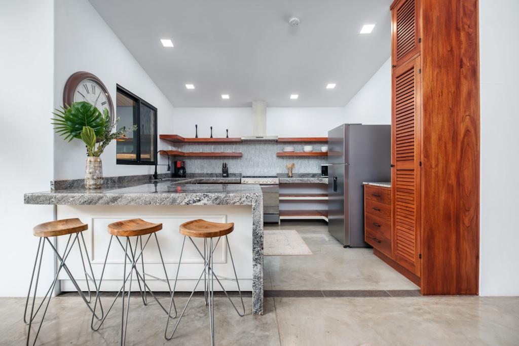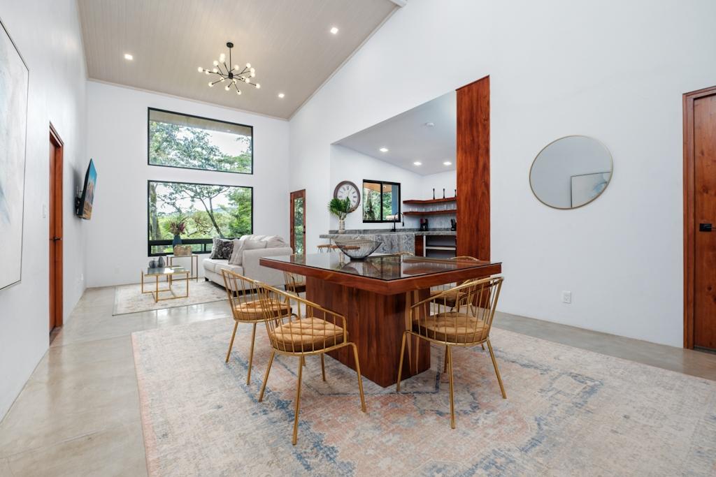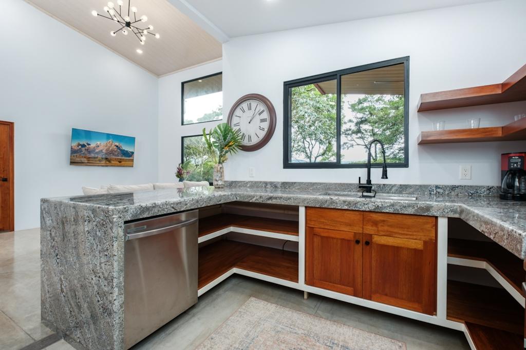 Descubra esta casa recién construida en Jaramillo Abajo, a minutos del centro de Boquete. Ubicada en una comunidad cerrada de cuatro casas contemporáneas, esta propiedad ofrece dos dormitorios, dos baños completos y un plano de planta abierto lleno de luz natural. El dormitorio principal cuenta con baño privado. La cocina abierta, elaborada con madera local, ofrece amplio espacio de almacenamiento y encimera. Disfrute de la terraza cubierta con chimenea de leña. La casa incluye un garaje para dos coches con lavadero totalmente equipado. Ubicada en un lote de 1,400 m2 con hermosos jardines tropicales, esta casa ofrece lujo moderno en medio de serenas vistas al bosque y a la montaña.