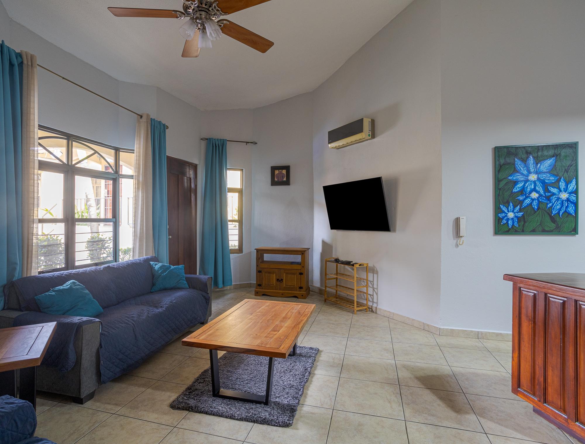 Este condominio en venta está convenientemente ubicado a 1 km del centro de David y es una opción popular para alquileres. Al ingresar a la propiedad, encontrará una sala de estar compartida con la cocina, separada por una isla que también sirve como barra desayunadora. La cocina cuenta con gabinetes de madera. El comedor tiene su propio espacio, al que se accede a través de un arco. El condominio incluye dos amplias recámaras, cada una con closets y su propio baño. El dormitorio principal cuenta con una bañera hundida. La unidad viene equipada con todos los electrodomésticos estándar, que incluyen lavadora y secadora, televisores grandes, cocina totalmente equipada y ropa de cama incluida. También hay una terraza de buen tamaño en la parte delantera para relajarse. Este condominio incluye tanque de agua de respaldo, lugares de estacionamiento y estacionamiento para visitas. La tarifa de mantenimiento actual es de $139, que cubre la basura, el agua y el mantenimiento del jardín.