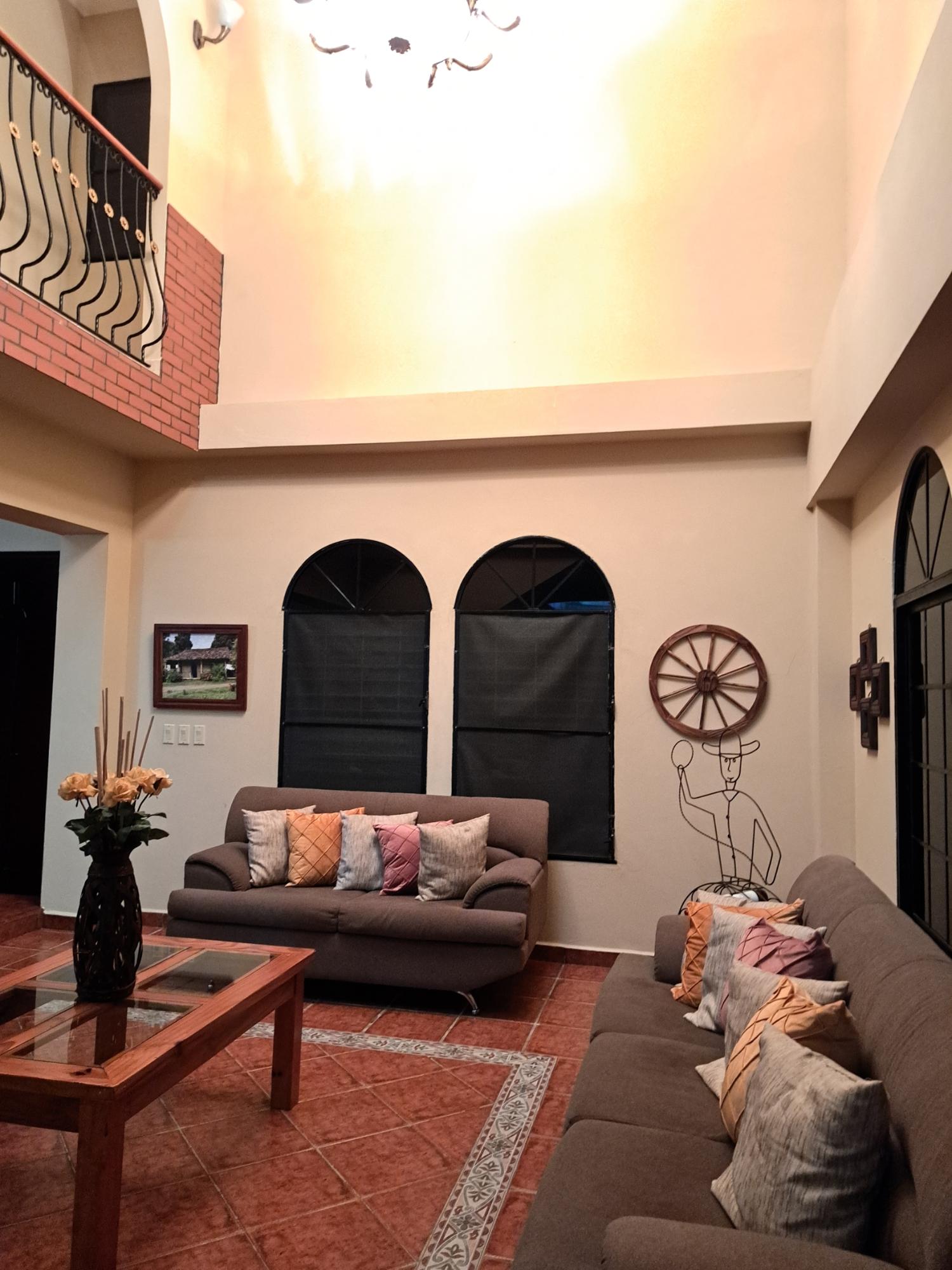 Espaciosa y cómoda casa de campo rodeada de mucho verdor y naturaleza y con mucha privacidad. La propiedad fue diseñada por su propietario para tener todas las comodidades de una casa familiar en el interior de Panamá, a sólo 5 minutos de la Ciudad de Las Tablas, cuna del folklore y de los famosos Desfile de las 1000 Polleras y el Carnaval Tableño. En la planta baja tiene amplia terraza, vestibulo, sala comedor, cocina con desayunador, un servicio sanitario, cuarto de estudio, y una recámara, lavandería interna. Cuenta con área con mesa de ping pong, cancha de basketball, y áreas de esparcimiento. Con espacio de 2 estacionamientos bajo techo y otros sin techo. En la segunda planta, Se encuentra la sala familiar, recáara principal con su baño y vestidor, dos recámaras y un baño en común a compartir, y un balcón. Venga a disfrutar del canto de los pájaros en las mañanas y del aire puro que ofrece vivir en esta hermosa propiedad en las afueras de la ciudad de Las Tablas.