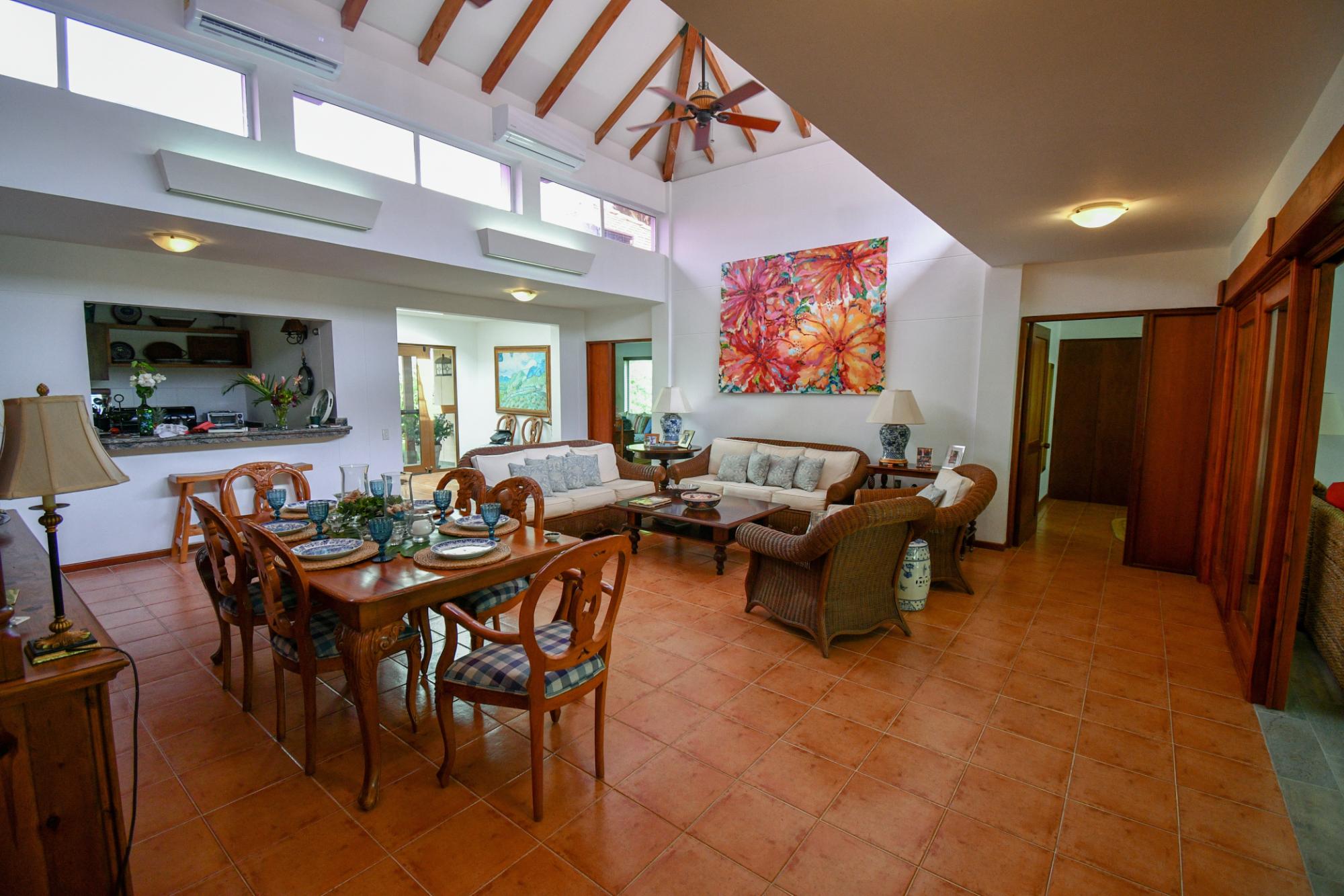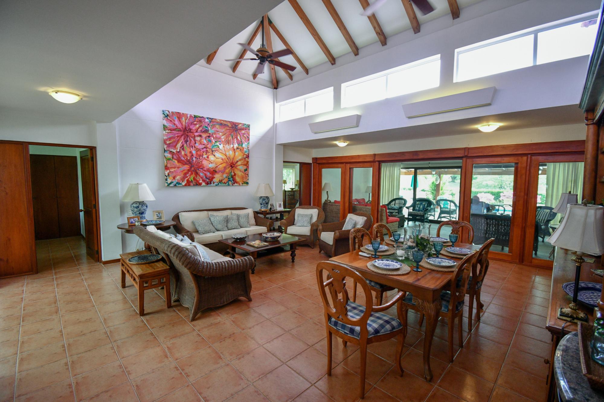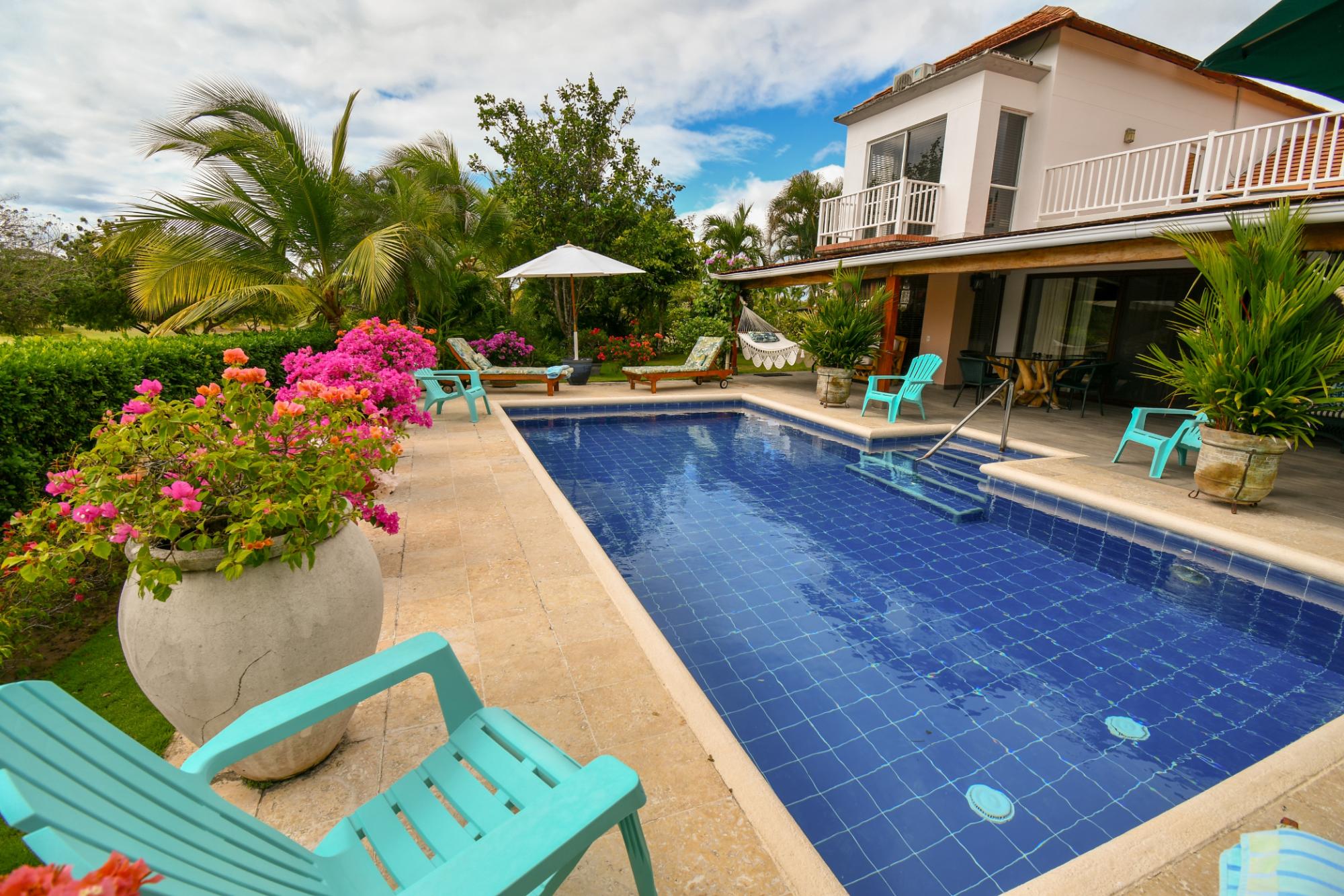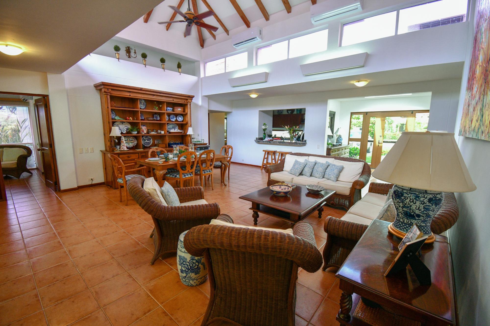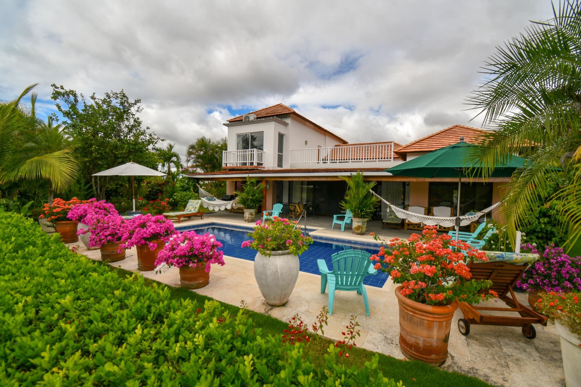 Descubre esta impecable villa de 4 dormitorios en Costa Blanca Golf & Villas. Con 296m2 de vivienda en un terreno de 871.64 m2, ofrece vistas al lago y al 6º hoyo del CAMPO DE GOLF MANTARRAYA. Privacidad garantizada, jardín exuberante, 3 habitaciones en planta baja, 1 en planta alta, y 2 master suites con vestidores. Cocina amplia, salón con zona de entretenimiento, aire acondicionado en todas partes, terraza con hamacas y piscina. Incluye 2 estacionamientos, semi-amueblada, y mantenimiento de $640/mes para numerosos servicios.
