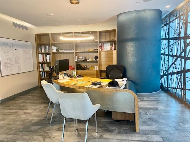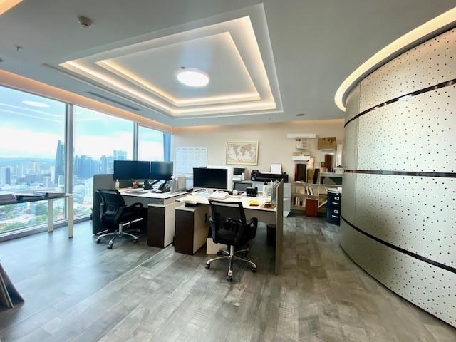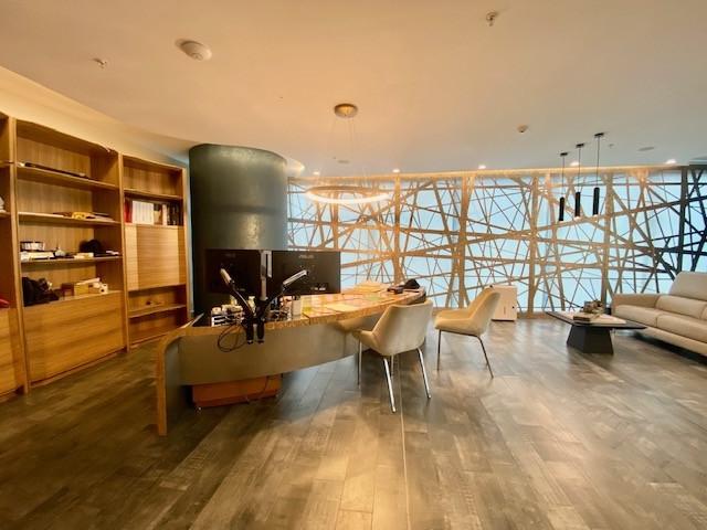 Esta hermosa oficina, ha sido diseñada por arquitectos de renombre, quienes se especializan en madera y la trabajan con materiales de alta gama, para los amantes del buen gusto. Al entrar te encuentras con una imponente recepción y una impresionante puerta de seguridad que te lleva a los espacios abiertos, para trabajar en un ambiente inigualable, con escritorios modernos, lamparas con diseños especiales, hermosa vista a la ciudad y al mar, además de una acogedora oficina privada, con escritorio y libreros de madera, diseños en los ventanales, una completa cafetería, con materiales de calidad al igual que el baño privado que tenemos en la misma. Su ubicación privilegiada, cerca a hospital, restaurantes, hoteles y shopping mall mas importantes de la ciudad, hacen de este espacio un ambiente acogedor y especial, para trabajar y desarrollar tu creatividad y logros.
