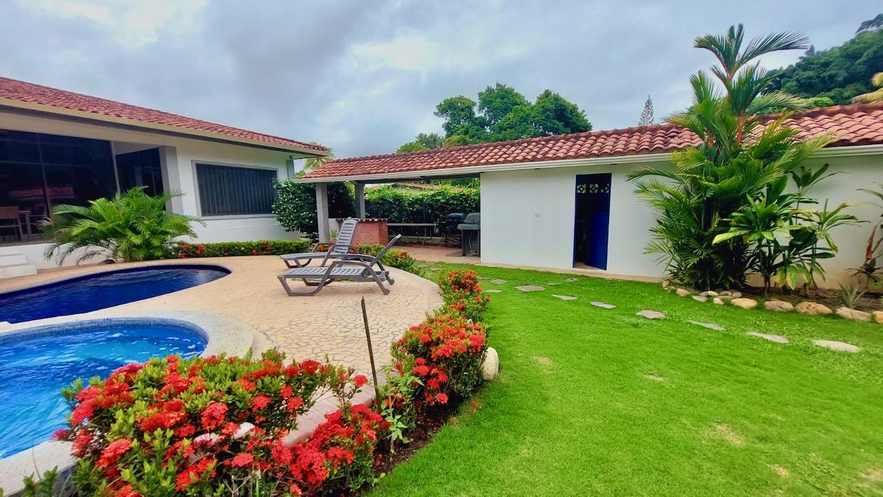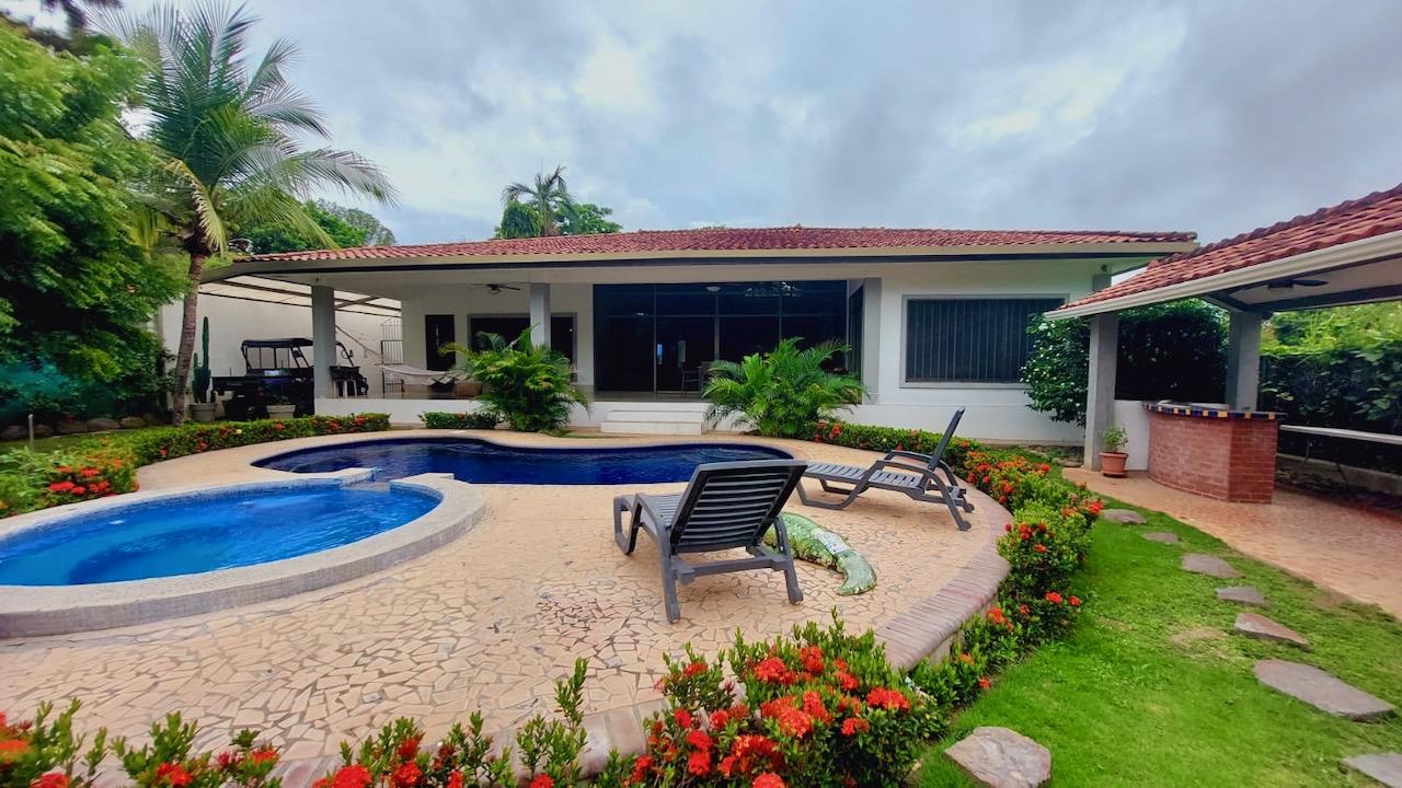 Esta casa única y espectacular está ubicada en el Camino de Balboa dentro del Club de Golf Coronado en un vecindario tranquilo y amigable con una vista increíble al campo de golf y la piscina desde la terraza. La propiedad tiene un total de 790 m2 de construcción en un lote de 1,163 m2. Además, la casa tiene acceso directo al campo de golf. La propiedad está muy bien construida con un estilo moderno rodeada de naturaleza para la observación de aves y mariposas. Tiene una gran terraza rebajada en la parte trasera con camas de jardín para el entretenimiento y el descanso. Características de la propiedad: -Comedor y sala de estar de concepto abierto con increíbles vistas a la piscina y los jardines directamente desde el hall de entrada y también desde la cocina. -Cocina espaciosa y ventilada con mucho espacio de encimera y almacenamiento, además de un área de desayuno hacia el comedor. -5 habitaciones, cada una con su propio baño completo, más armarios. -Un amplio den o sala de televisión con su baño completo y acceso directo al patio de la casa. -Un loft-mezzanine encima de la cocina podría usarse como oficina con las hermosas vistas de la sala y del exterior con sus grandes ventanales hasta el techo. -Amplia terraza, jardín con árboles frutales. -Área social con piscina y jacuzzi. -Acceso directo al campo de golf, HOYO 7. -Agua de pozo y de la municipalidad, con un tanque de reserva adicional de agua. -Agua caliente. -Muebles y electrodomésticos incluidos. -Depósito e invernadero para jardinería. -Lavanderia independiente con lavadora y secadora nuevas de un solo uso +cuarto de empleados. -Bohío con área de BBQ independiente (barbacoa Weber incluida). -Sistema de seguridad, urbanización cerrada y cercada. -Mulita negociable. Así que, ¡no esperes más y no pierdas la oportunidad de venir a ver esta increíble propiedad de la que te enamorarás para convertirte en el nuevo propietario!