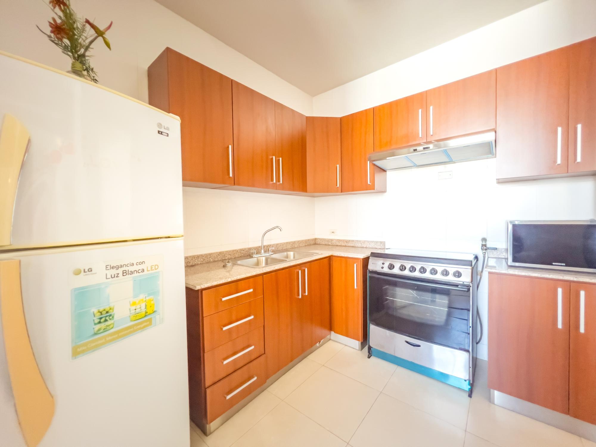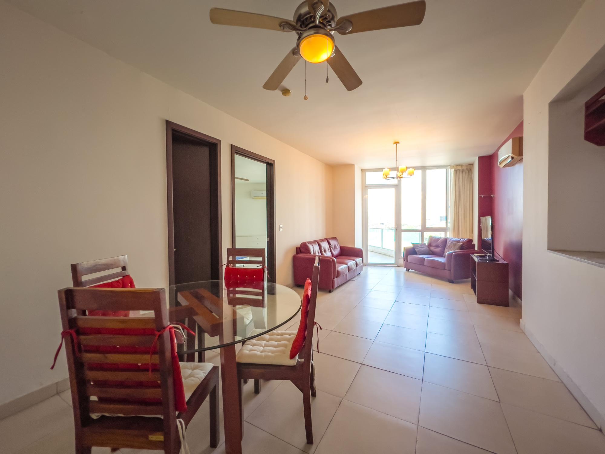 La propiedad Tenemos a la venta este acogedor apartamento de 104 m2, el cual se distribuye de la siguiente manera: Sala-Comedor 1 recámara 2.5 baños Balcón Cocina Lavandería Recámara principal con baño y walk-in closet El apartamento incluye aires acondicionados 1 estacionamientos El edificio El edificio posee 17 pisos 3 niveles de estacionamientos 4 apartamentos por piso Lobby Garita de seguridad 24 horas 2 elevadores de alta velocidad Área social completa: piscina, gimnasio, sala de eventos, área de bbq Cuenta con planta eléctrica total
