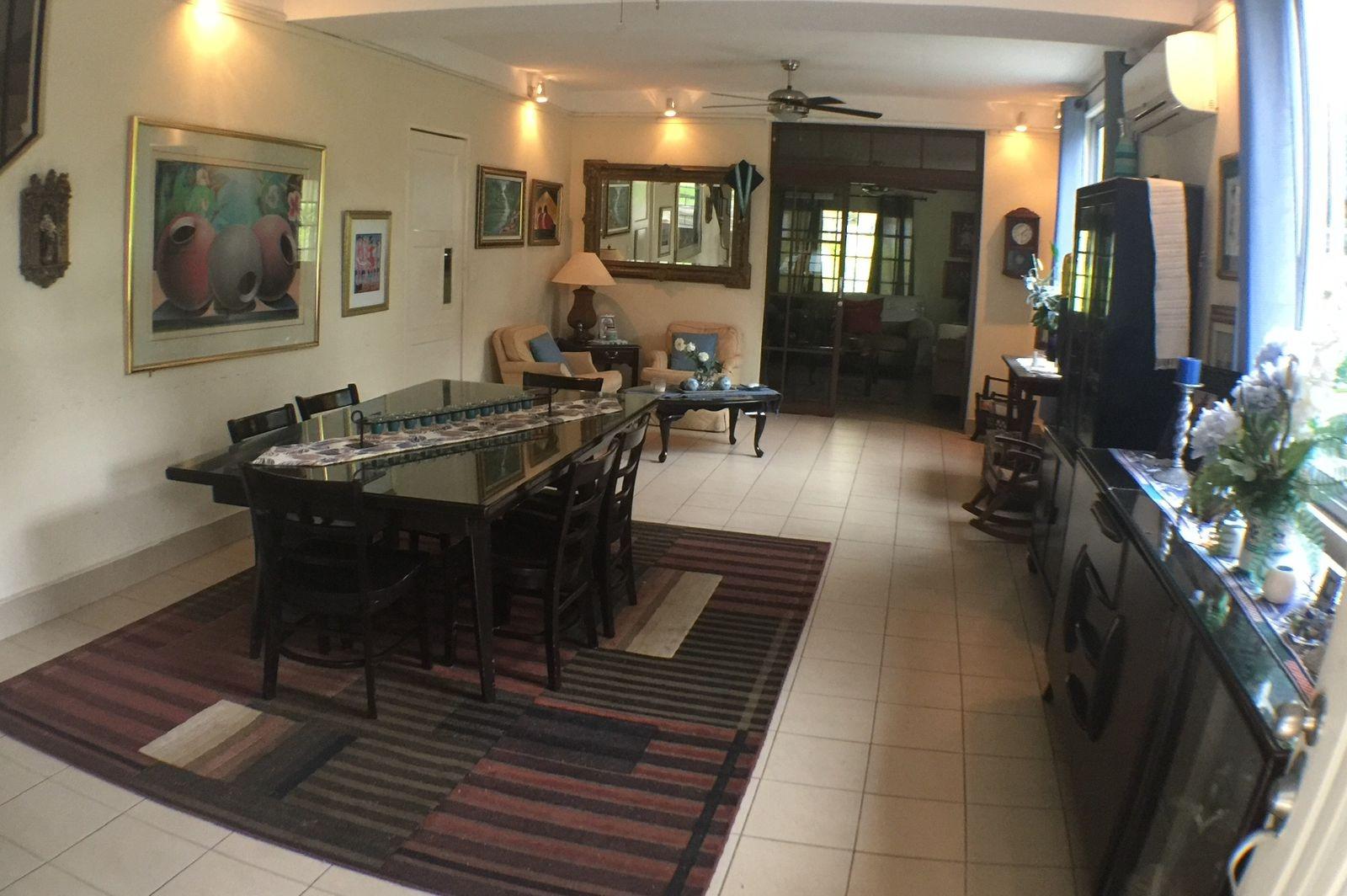 Esta impresionante residencia en Diablo Heights ofrece una combinación perfecta de comodidad y funcionalidad, diseñada para satisfacer todas las necesidades de una familia moderna. -Estacionamiento, Portal y Terraza-Bar: El estacionamiento tiene capacidad para tres automóviles y cuenta con un piso de concreto a llana, proporcionando un espacio seguro y duradero para los vehículos. El portal presenta un elegante piso de baldosas y un techo de losa de hormigón con repello liso, creando una entrada acogedora y resistente. La terraza, ideal para el entretenimiento al aire libre, está equipada con un piso de baldosas, cielo raso de gypsum y un techo de zinc sobre una estructura metálica, combinando estética y funcionalidad. -Área Cerrada: La casa se distribuye en dos plantas, ofreciendo amplios espacios habitables: -Planta Baja: Incluye una espaciosa sala, comedor, cocina, lavandería, estudio, cuarto de empleada, un baño completo y dos medios baños. El piso de baldosas y el techo de losa de hormigón con repello liso predominan en esta planta, con excepción del estudio que cuenta con cielo raso de gypsum, proporcionando un ambiente acogedor y moderno. -Planta Alta: Consta de tres recámaras y dos baños completos y un medio baño. El piso de baldosas y el cielo raso de gypsum crean una atmósfera confortable y elegante, complementa
