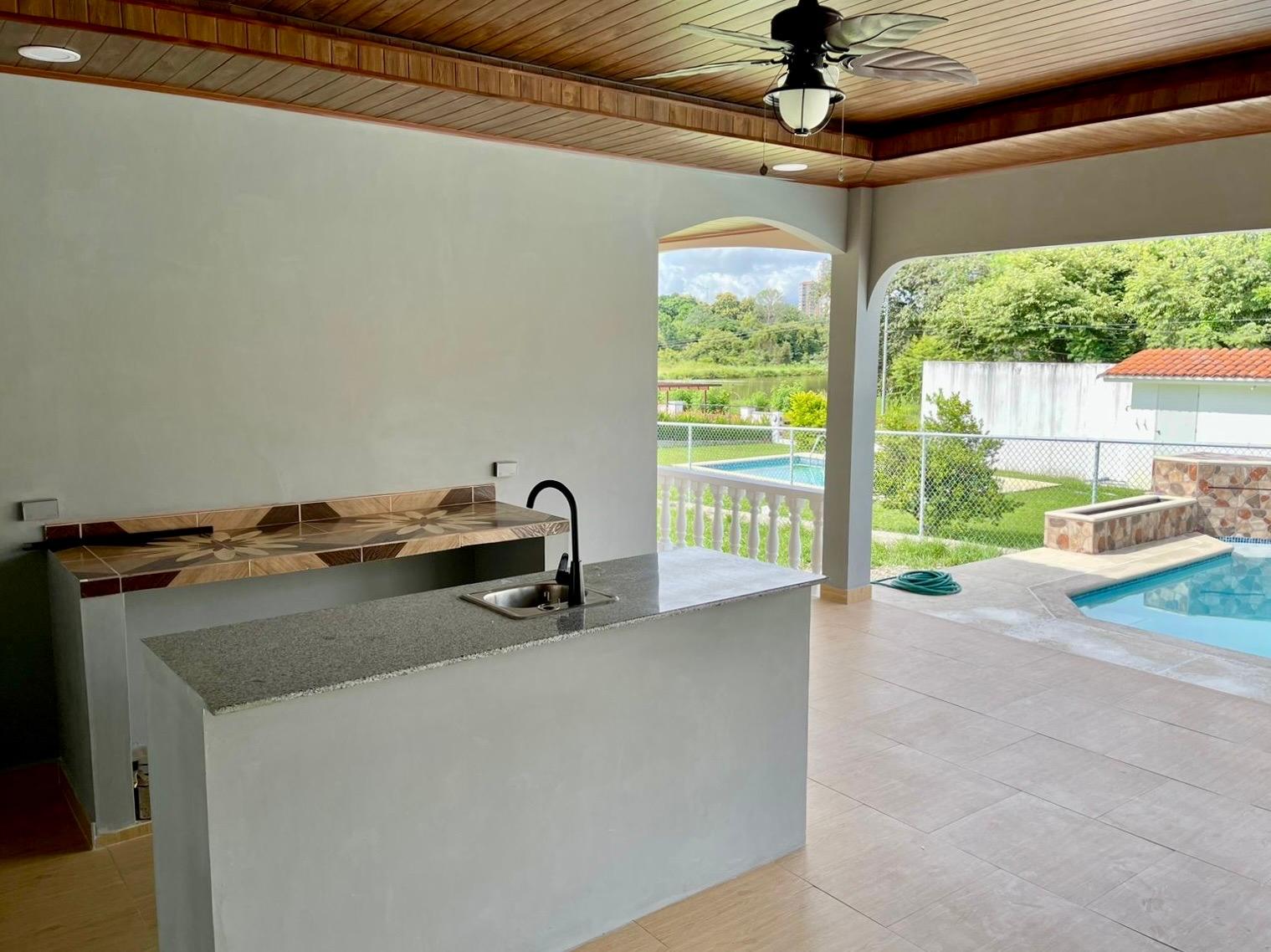 Acogedora casa en Coronado, cerca de todo. Cuenta con 4 recámaras, 2 baños, sala comedor, cocina abierta, terraza con bar, depósito, garaje techado, bohío, piscina, completamente cercada y con un amplio patio trasero.