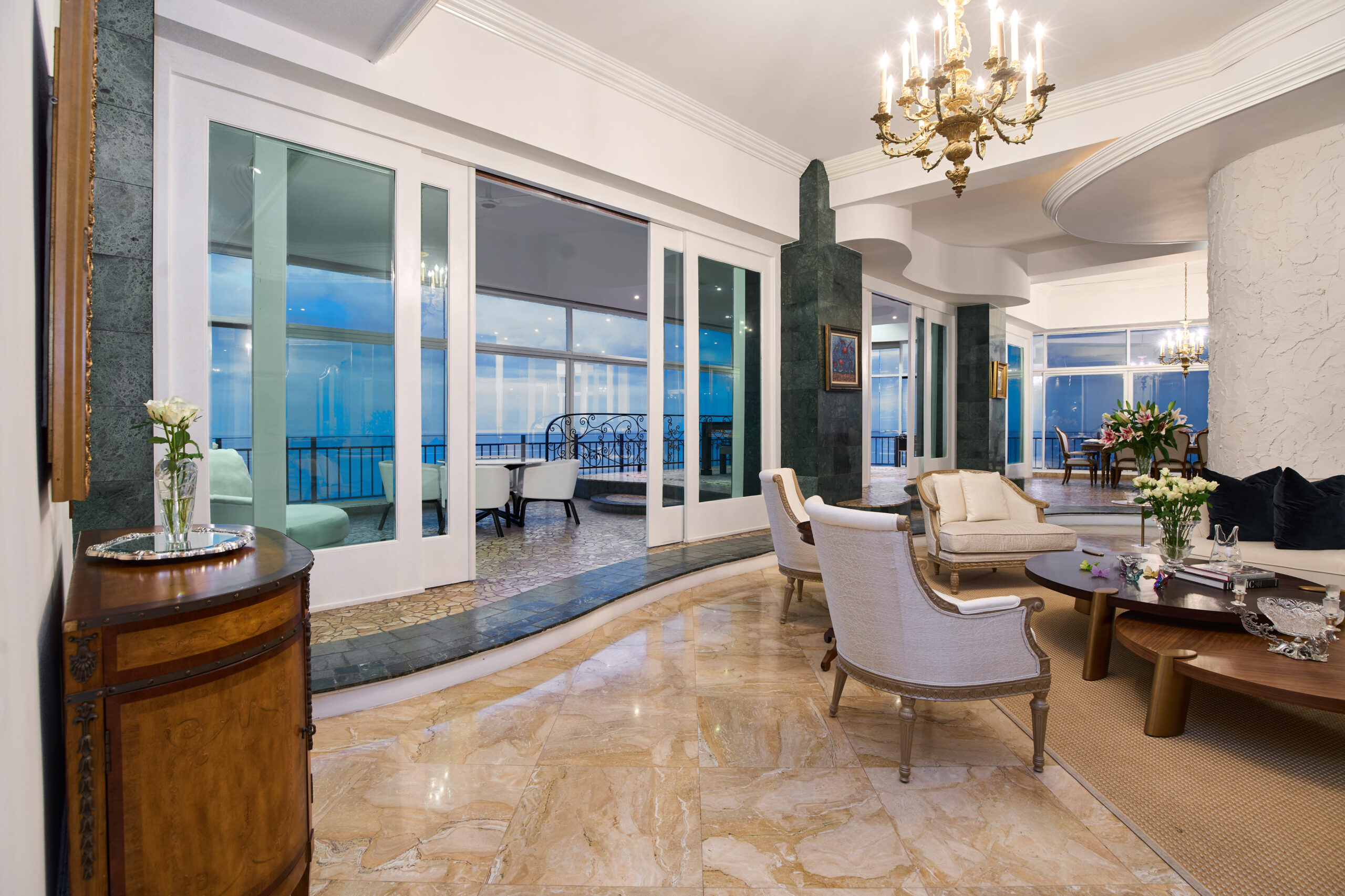 Áreas Sociales Exquisitas: Disfruta de una gran sala, comedor, family room, y un elegante bar. Además, una terraza con vistas al mar y un área de entretenimiento para tus momentos de ocio.