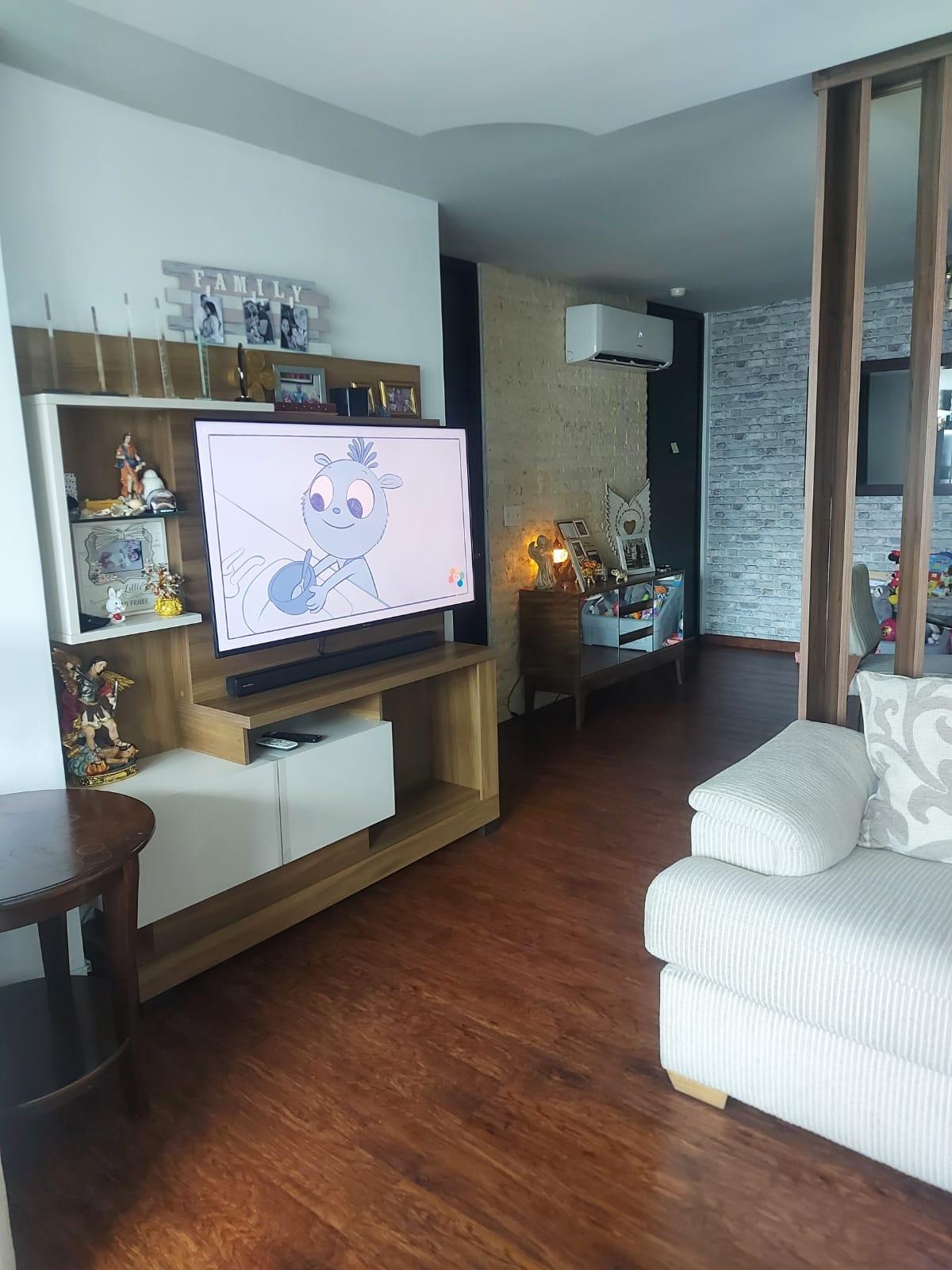 Venta de apartamento de 130m2, recámara principal con baño completo, walk in closet, dos recámaras secundarias con baño compartido completo. Sala, comedor, amplio balcón, cocina, lavandería, cuarto y baño completo de servicio. Dos estacionamientos. El apartamento tiene vista completa de 90 grados (sin edificios contiguos que obstaculicen la vista). El PH cuenta con piscina, área de juegos para niños, área de barbacoa, salón de fiesta, amplio gimnasio, saunas.
