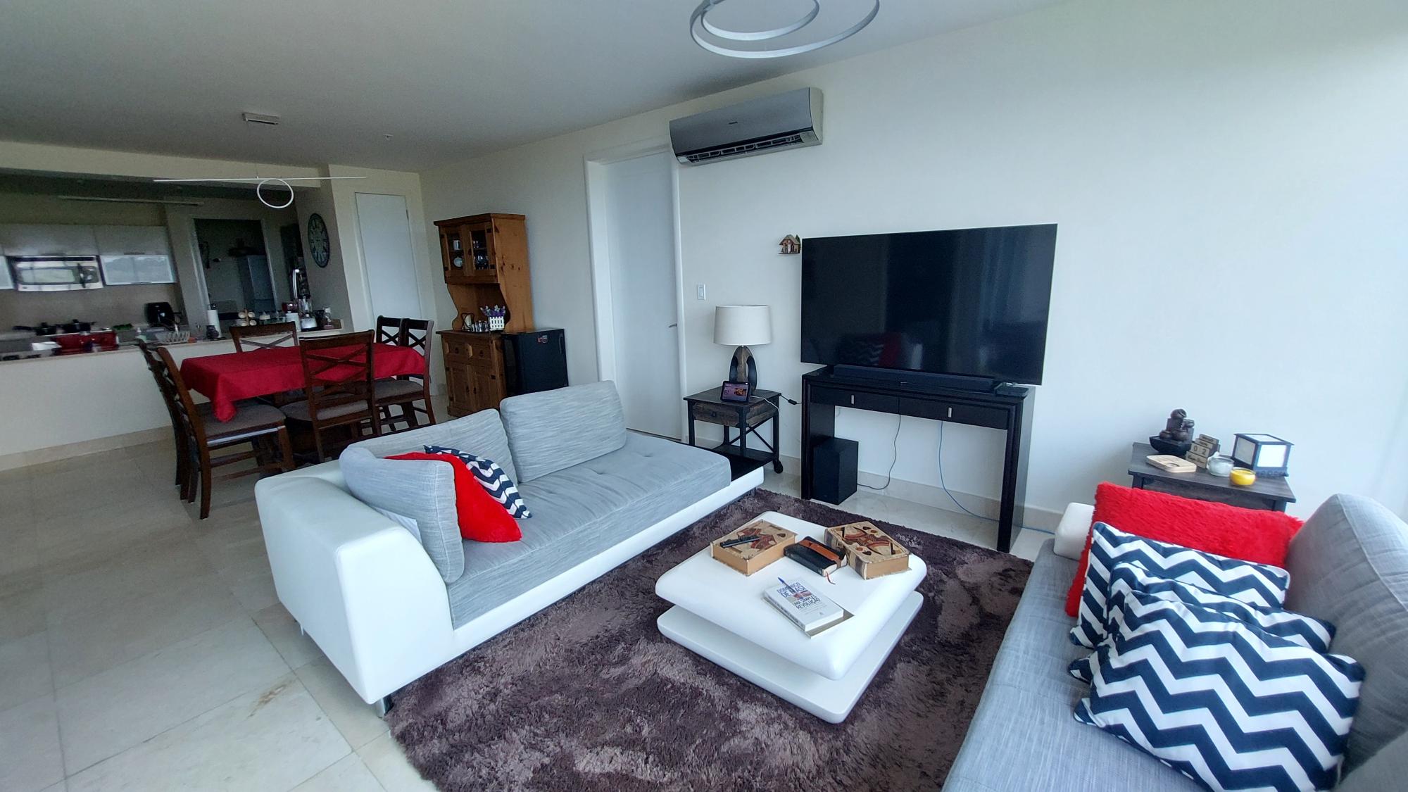 Tenemos a la venta este espectacular apartamento en Playa Bonita residences, el cual cuenta con 133 m2 distribuidos de la siguiente manera: 2 recámaras, 2 baños, balcón, cocina, lavandería. El apartamento cuenta con 1 estacionamiento, se vende completamente amoblado. El edificio cuenta con 26 pisos, 21 niveles de apartamentos, doce apartamentos por piso, tres elevadores de alta velocidad, elevador de servicio, estacionamientos de visitas, seguridad 24 horas, planta eléctrica, servicio de concierge, completa área social en los últimos dos niveles con una vista de 360°, piscina, terraza abierta, salón de fiestas, gimnasio, playa privada, área de barbacoa, juegos para niños. En el área social interna se encuentran el sauna, jacuzzi, juegos de mesa (ping pong, billar, póker).