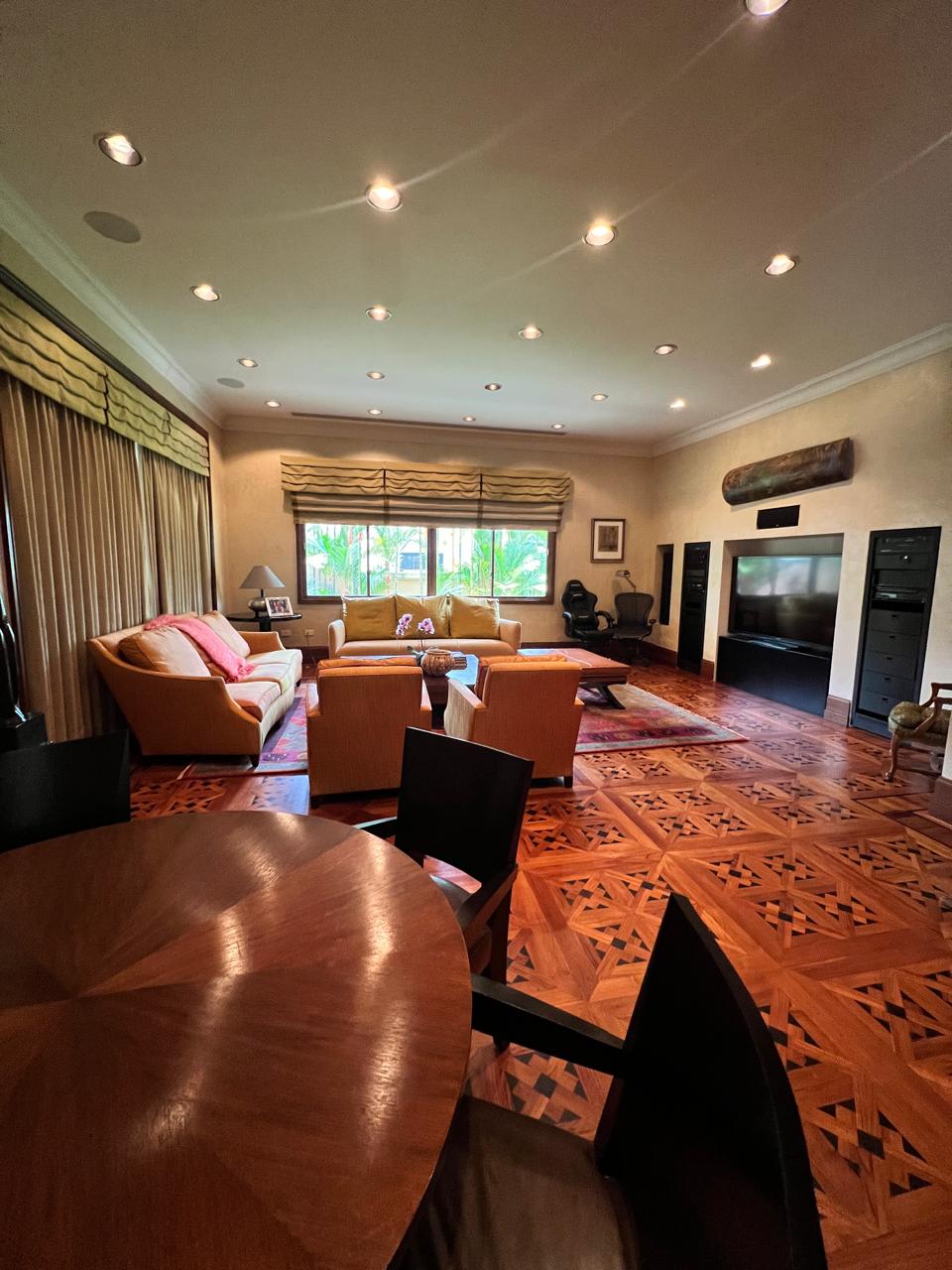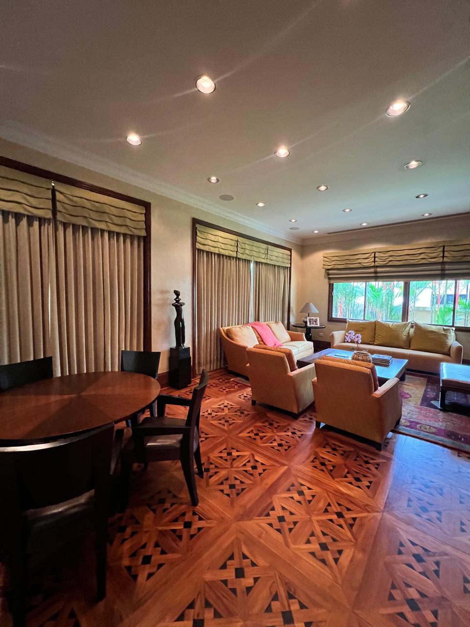 Ideal para familias numerosas o como residencia de embajadores, esta mansión ofrece áreas comunes separadas de las habitaciones: una majestuosa entrada, sala, un amplio den de entretenimiento, un comedor para 14-16 personas, una terraza y un den secundario privado. En la segunda planta, se encuentra otro den privado con biblioteca y un balcón equipado para gimnasio.